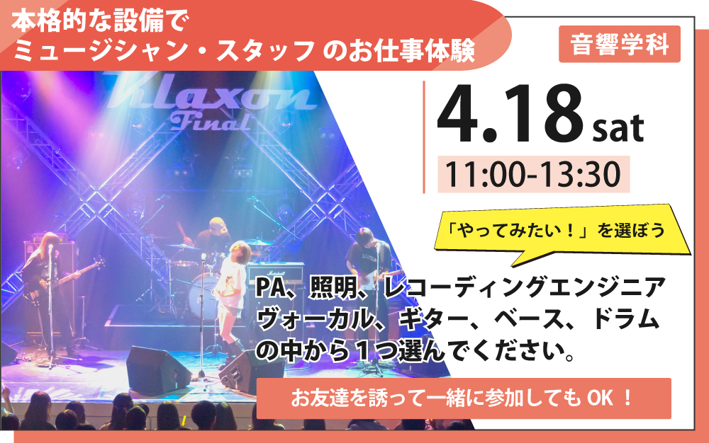 他校と違う、独自の専攻と授業内容 音響学科 2年制